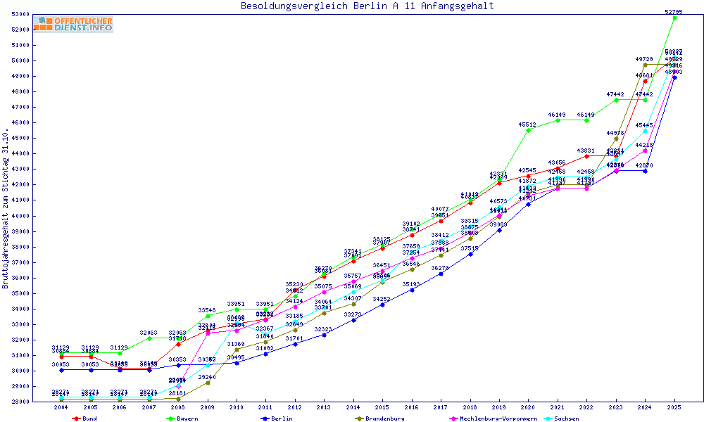 | Sachsen | 50.227 € | +1323 € | +2.7% | +1000 € | +2.0% | ||