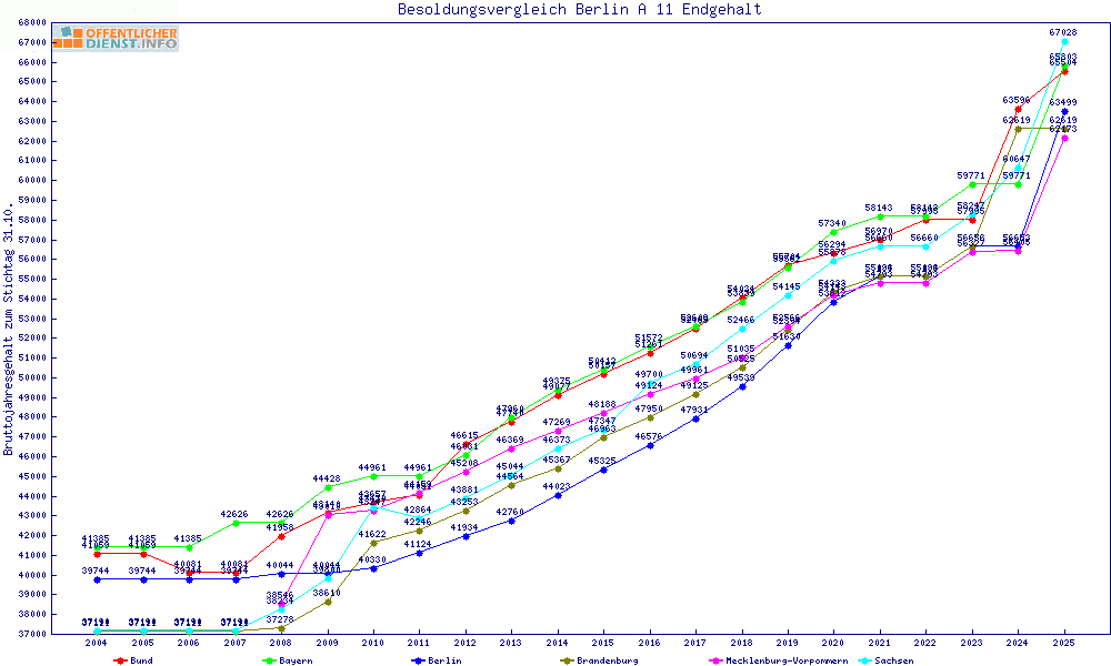 | Besoldungsvergleich A 11 im Jahr 2025 | gemitteltes Gehalt | ||||||