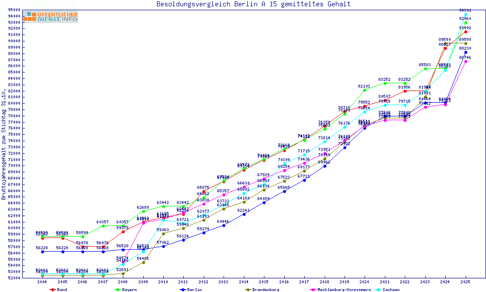| Besoldungsvergleich A 15 im Jahr 2025 | gemitteltes Gehalt | ||||||