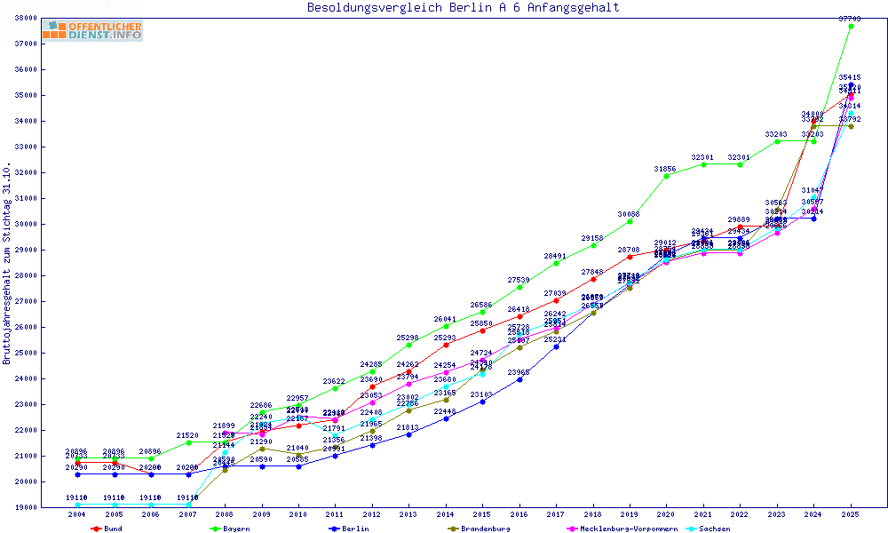 | Besoldungsvergleich A 6 im Jahr 2025 | Anfangsgehalt | ||||||