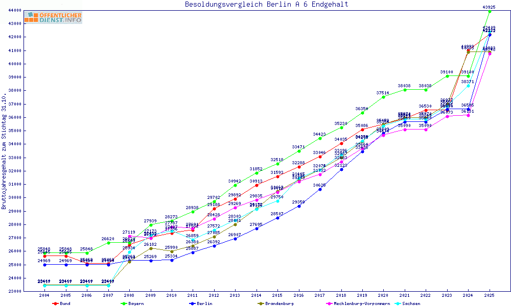 | Besoldungsvergleich A 6 im Jahr 2025 | Endgehalt | |||||||