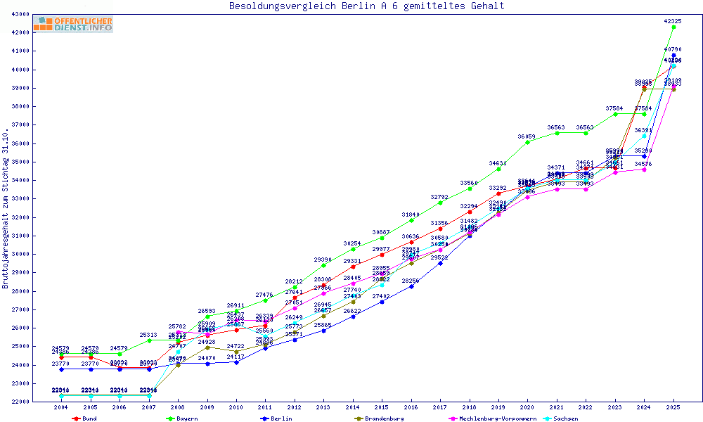 | Besoldungsvergleich A 6 im Jahr 2025 | gemitteltes Gehalt | ||||||