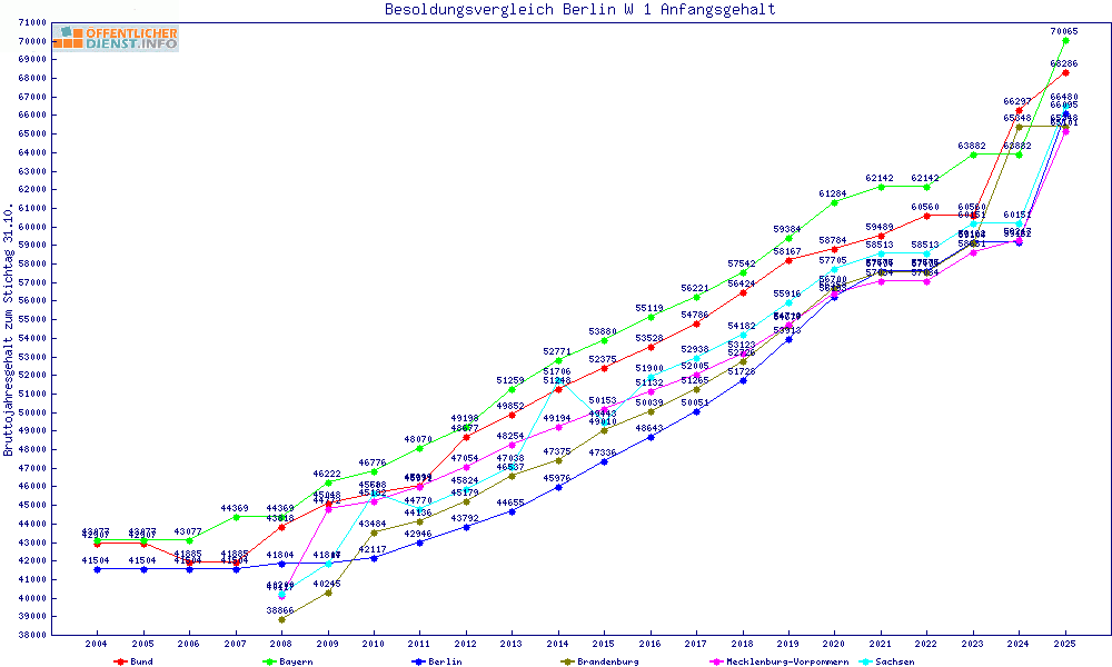 | Besoldungsvergleich W 1 im Jahr 2025 | Anfangsgehalt | ||||||