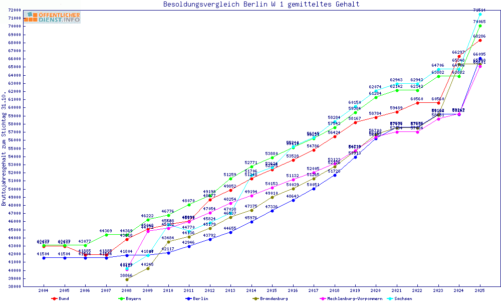 | Besoldungsvergleich W 1 im Jahr 2025 | gemitteltes Gehalt | ||||||
