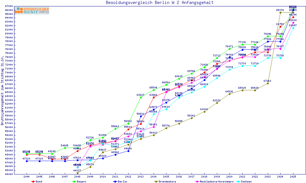 | Besoldungsvergleich W 2 im Jahr 2025 | Anfangsgehalt | ||||||