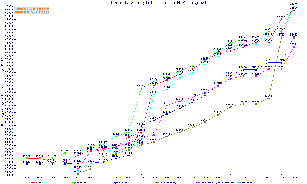 | Sachsen | 94.979 € | +9012 € | +10.5% | +9627 € | +11.3% | 6 Jahre | ||
