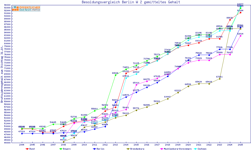 | Besoldungsvergleich W 2 im Jahr 2025 | gemitteltes Gehalt | ||||||