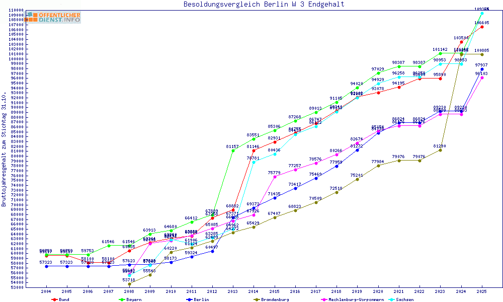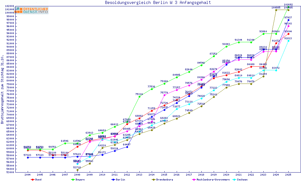 | Besoldungsvergleich W 3 im Jahr 2025 | Anfangsgehalt | ||||||