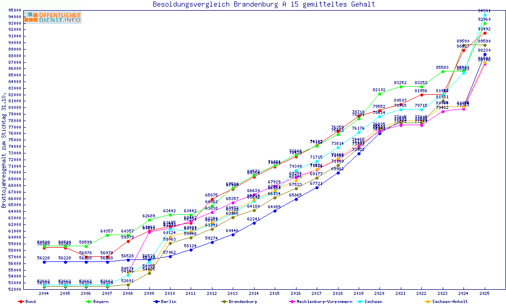 | Brandenburg | 93.427 € | -103 € | -0.1% | 18 Jahre | ||||