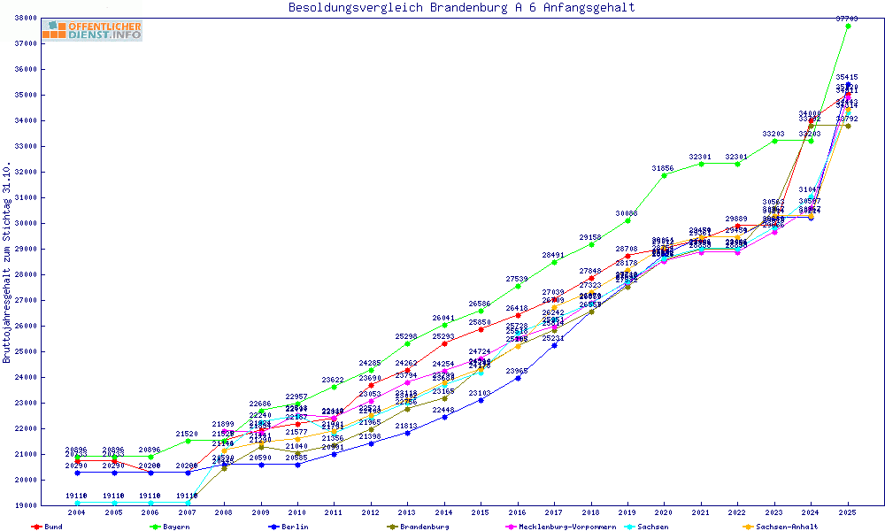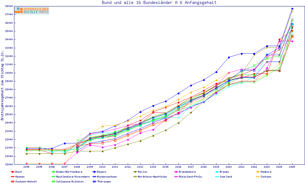 | Besoldungsvergleich A 6 im Jahr 2025 | Anfangsgehalt | ||||||