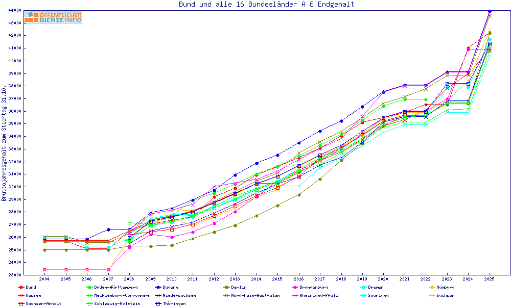 | Besoldungsvergleich A 6 im Jahr 2025 | Endgehalt | |||||||