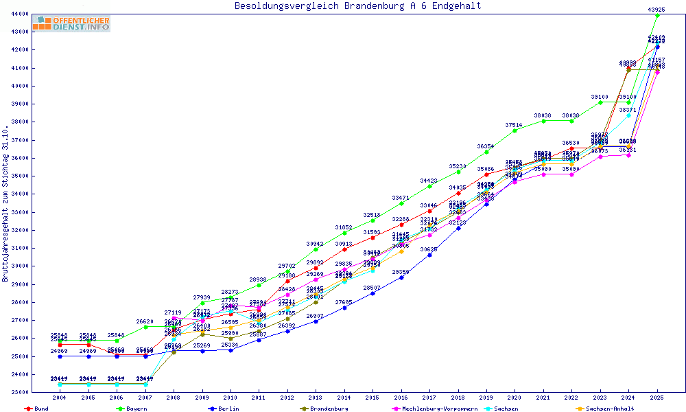 | Bayern | 43.926 € | +3041 € | +7.4% | +2122 € | +5.1% | 20 Jahre | ||