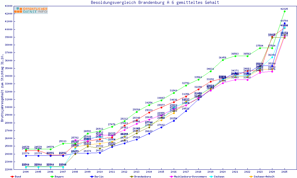 | Besoldungsvergleich A 6 im Jahr 2025 | gemitteltes Gehalt | ||||||