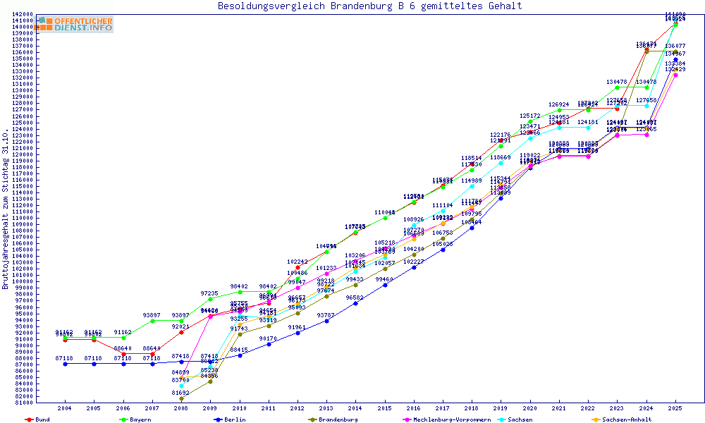 | Besoldungsvergleich B 6 im Jahr 2025 | gemitteltes Gehalt | ||||||