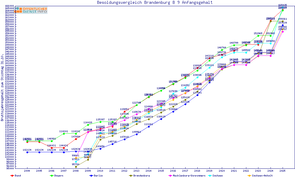 | Besoldungsvergleich B 9 im Jahr 2025 | Anfangsgehalt | ||||||