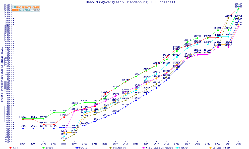 | Besoldungsvergleich B 9 im Jahr 2025 | gemitteltes Gehalt | ||||||