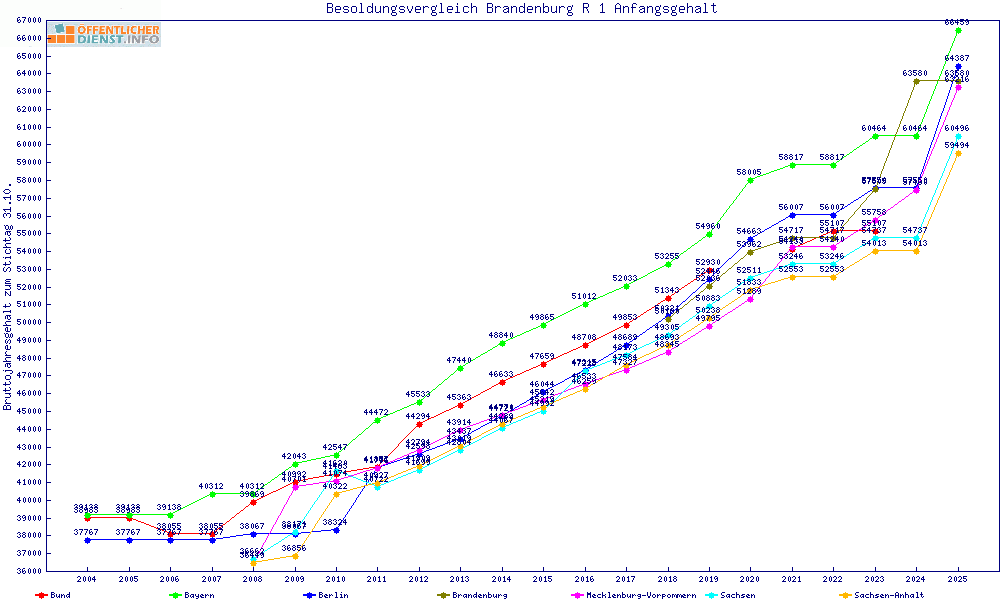 | Besoldungsvergleich R 1 im Jahr 2025 | Anfangsgehalt | ||||||