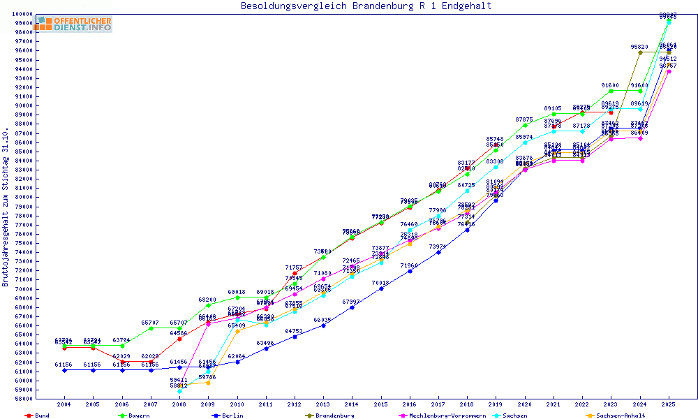 | Sachsen | 99.049 € | +3228 € | +3.4% | +3618 € | +3.8% | 31 Jahre | ||