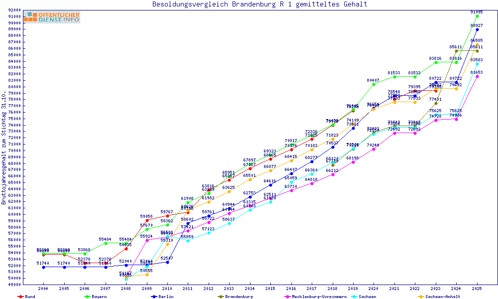 | Brandenburg | 95.821 € | +390 € | +0.4% | 26 Jahre | ||||
