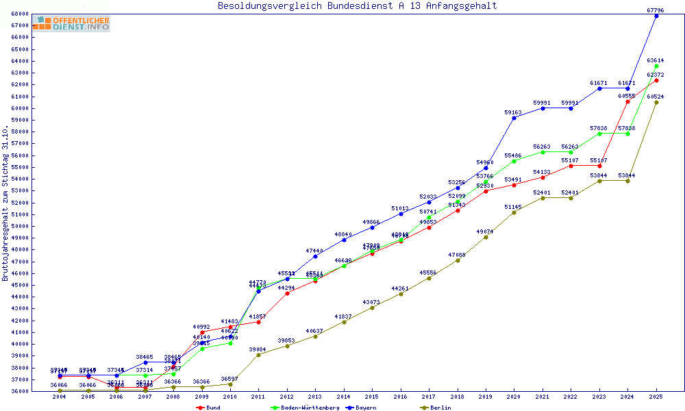 | Besoldungsvergleich A 13 im Jahr 2025 | Anfangsgehalt | ||||||