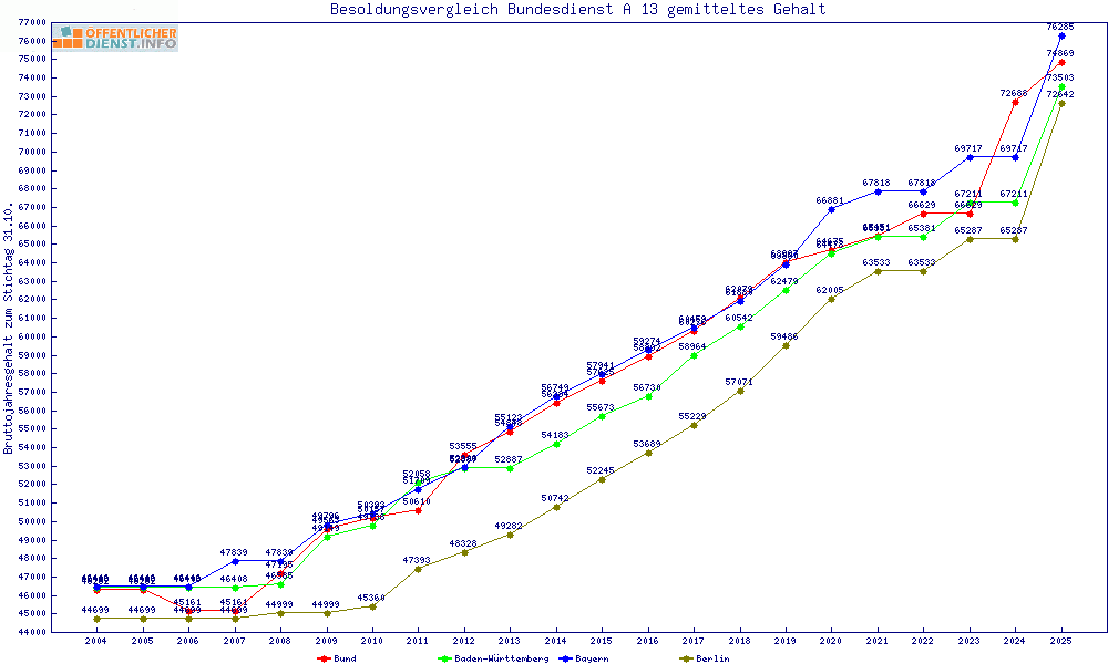 | Besoldungsvergleich A 13 im Jahr 2025 | gemitteltes Gehalt | ||||||