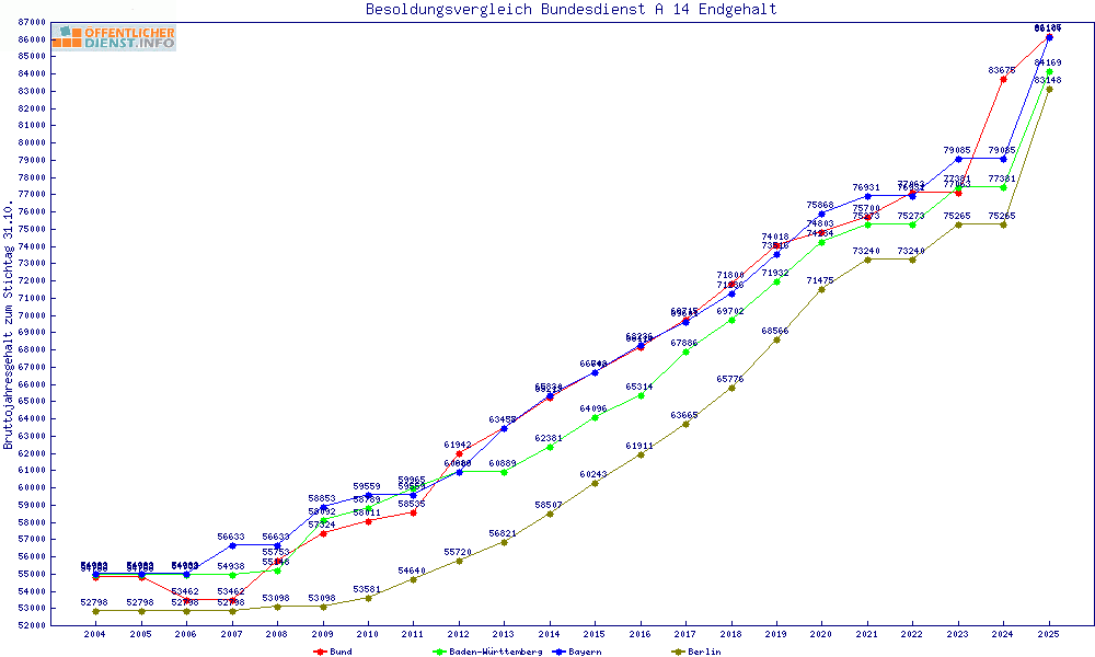 | Besoldungsvergleich A 14 im Jahr 2025 | Anfangsgehalt | ||||||