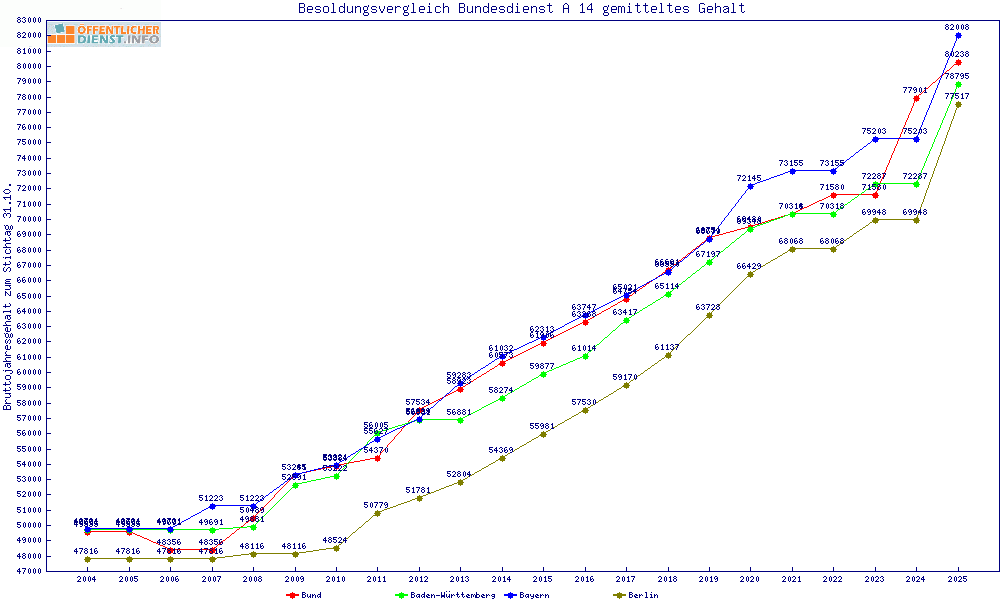 | Besoldungsvergleich A 14 im Jahr 2025 | gemitteltes Gehalt | ||||||