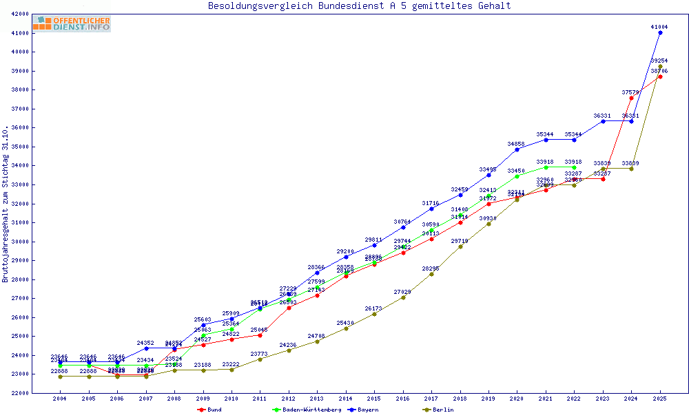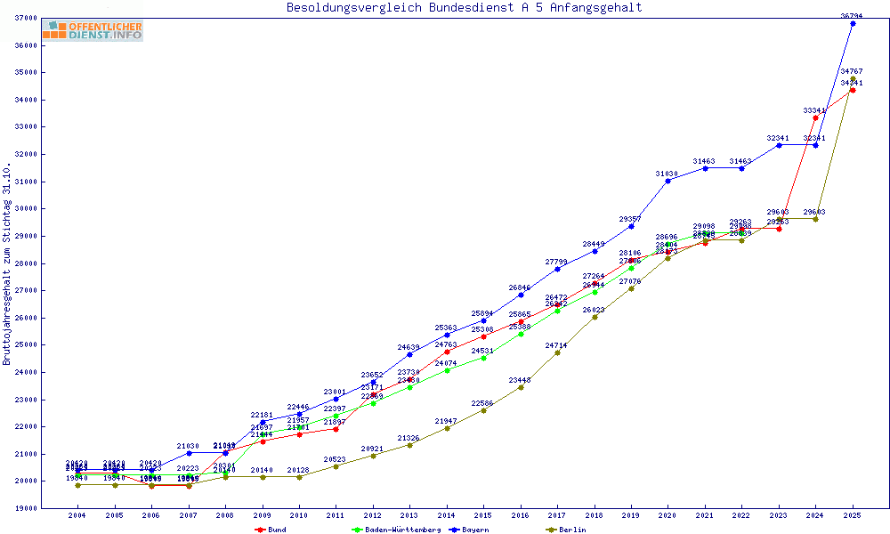 | Besoldungsvergleich A 5 im Jahr 2025 | gemitteltes Gehalt | ||||||