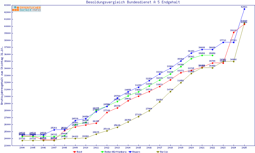 | Besoldungsvergleich A 5 im Jahr 2025 | Endgehalt | |||||||