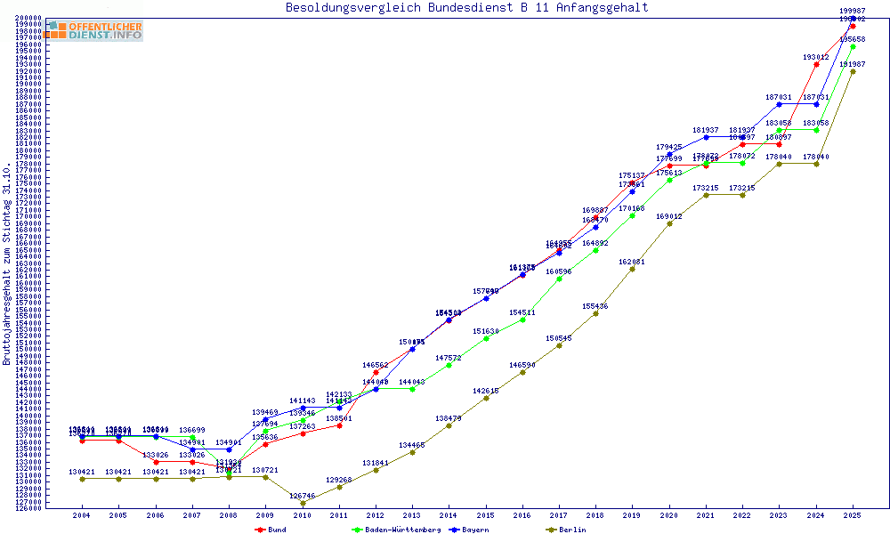 | Besoldungsvergleich B 11 im Jahr 2025 | Anfangsgehalt | ||||||