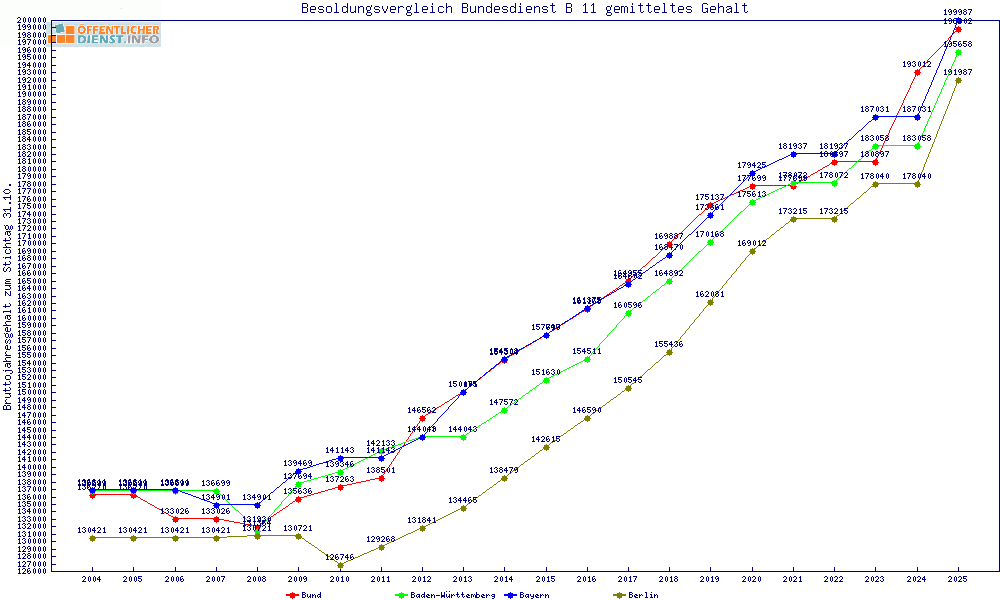 | Besoldungsvergleich B 11 im Jahr 2025 | gemitteltes Gehalt | ||||||