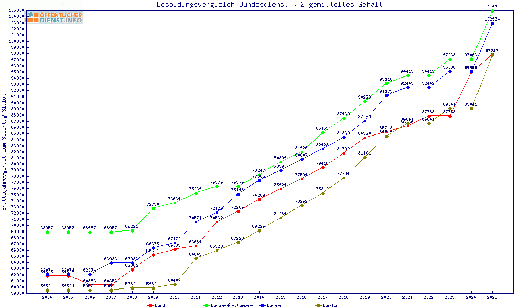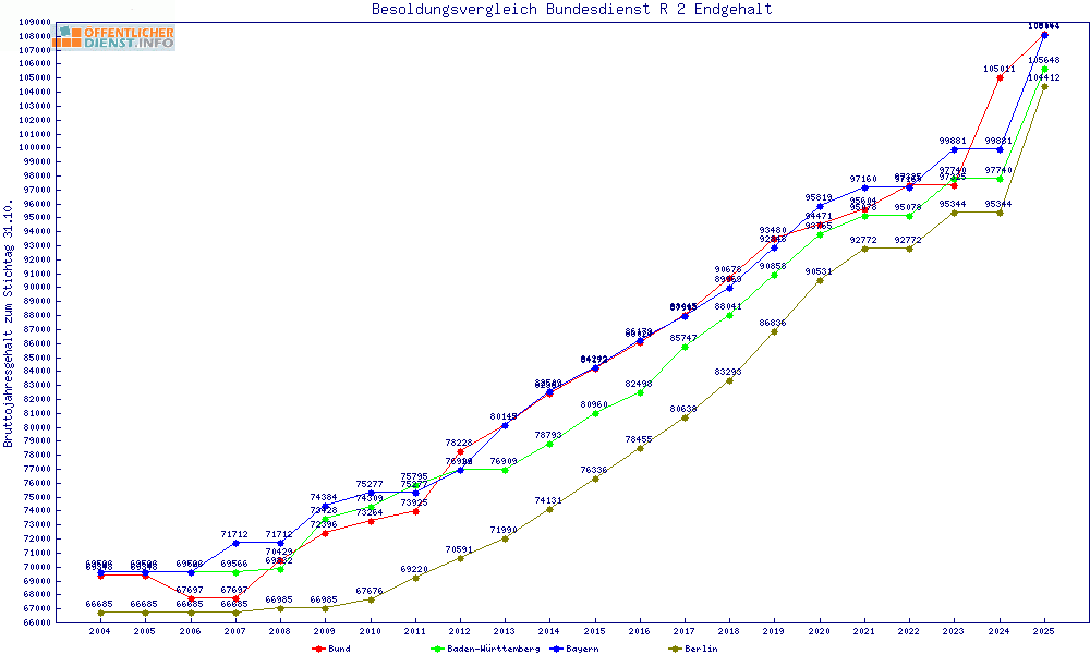 | Besoldungsvergleich R 2 im Jahr 2025 | Anfangsgehalt | ||||||