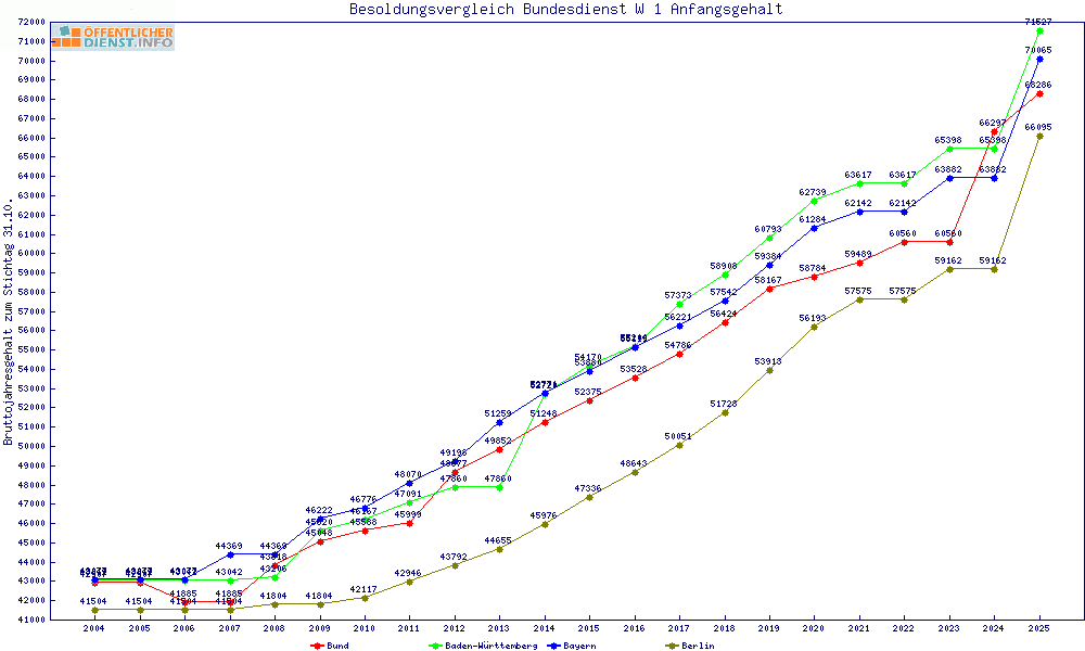 | Besoldungsvergleich W 1 im Jahr 2025 | Anfangsgehalt | ||||||