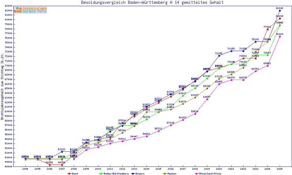 | Besoldungsvergleich A 14 im Jahr 2025 | gemitteltes Gehalt | ||||||