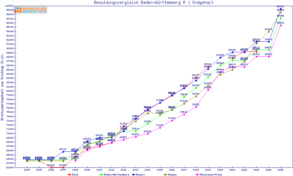 | Bayern | 99.308 € | +2212 € | +2.3% | +3877 € | +4.1% | 18 Jahre | ||
