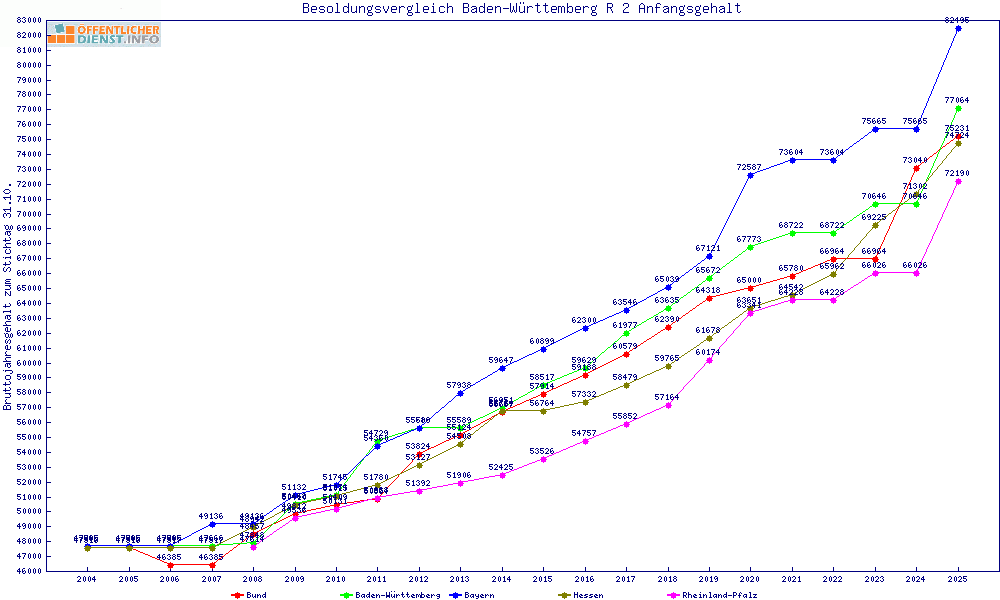 | Besoldungsvergleich R 2 im Jahr 2025 | Anfangsgehalt | ||||||