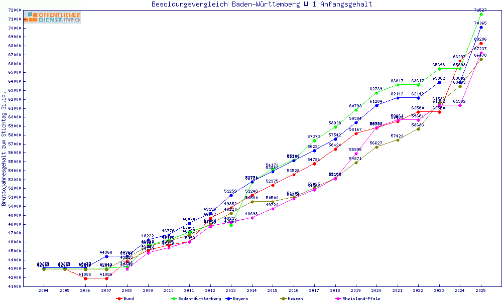 | Besoldungsvergleich W 1 im Jahr 2025 | Anfangsgehalt | ||||||