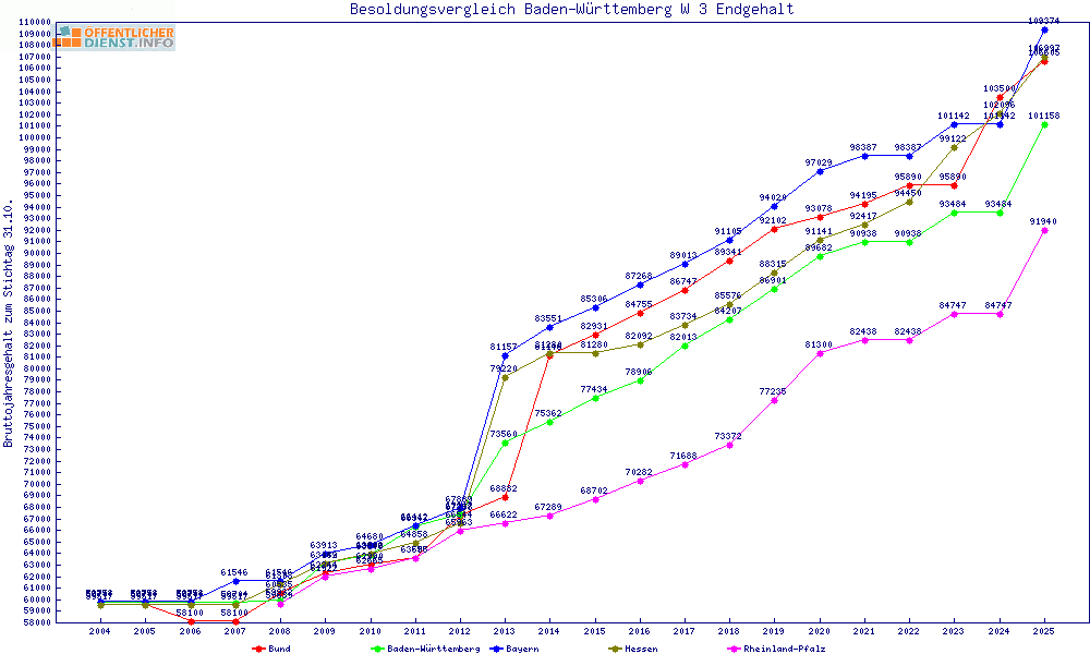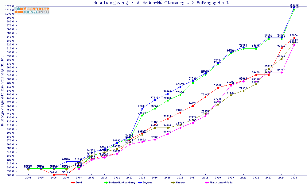 | Besoldungsvergleich W 3 im Jahr 2025 | Anfangsgehalt | ||||||