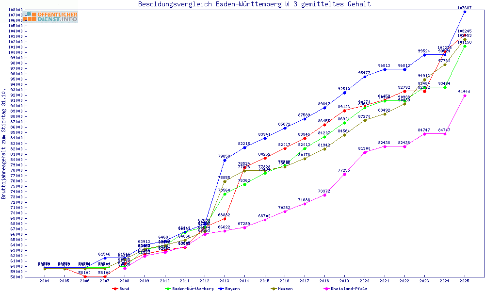 | Besoldungsvergleich W 3 im Jahr 2025 | gemitteltes Gehalt | ||||||