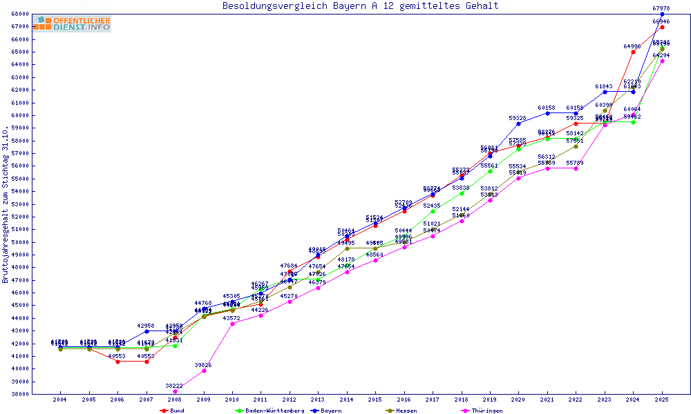 | Besoldungsvergleich A 12 im Jahr 2025 | gemitteltes Gehalt | ||||||