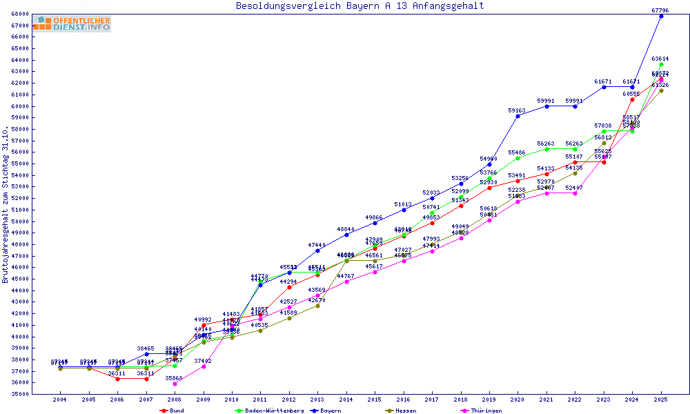 | Besoldungsvergleich A 13 im Jahr 2025 | Anfangsgehalt | ||||||