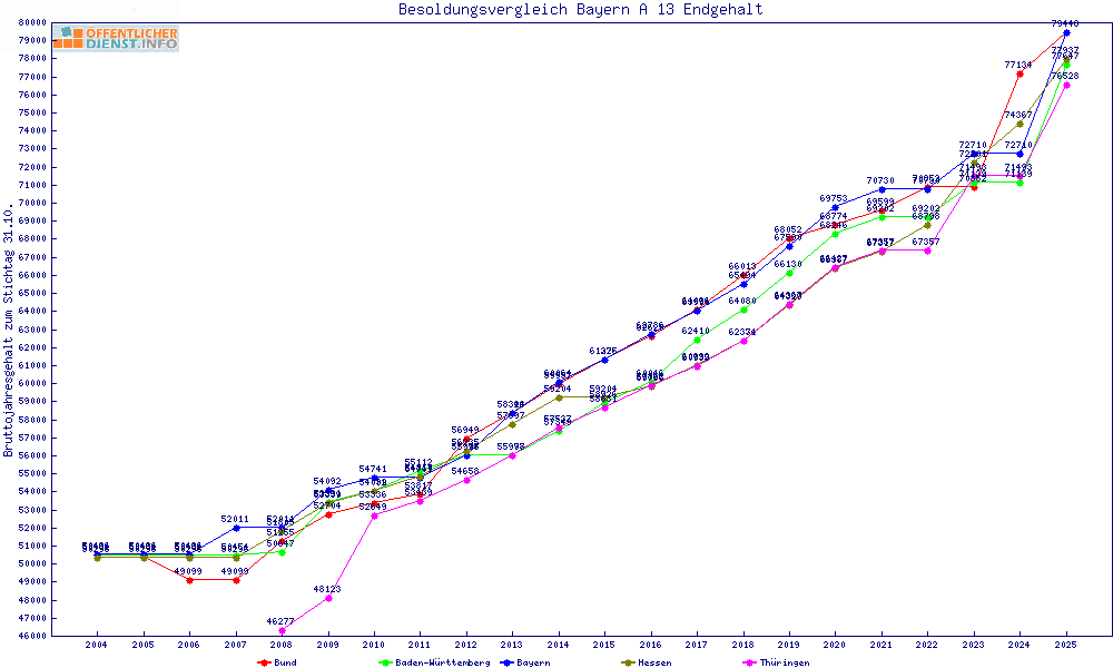| Bayern | 79.443 € | +2861 € | +3.7% | 21 Jahre | ||||