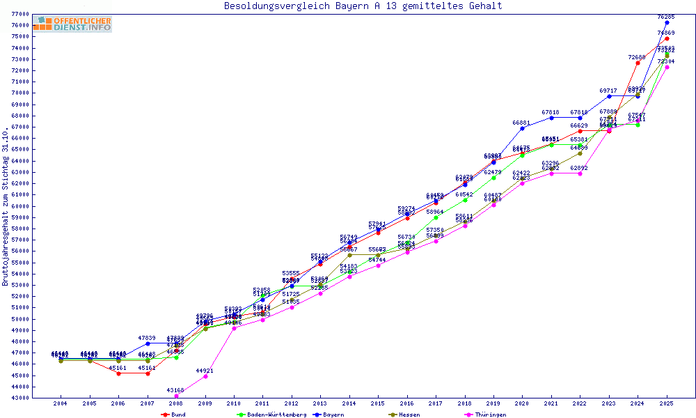 | Besoldungsvergleich A 13 im Jahr 2025 | gemitteltes Gehalt | ||||||