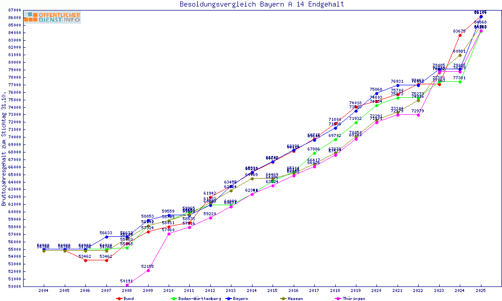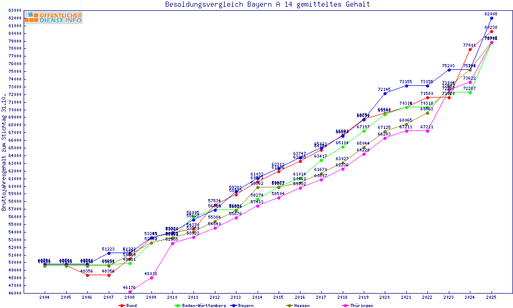 | Besoldungsvergleich A 14 im Jahr 2025 | Anfangsgehalt | ||||||
