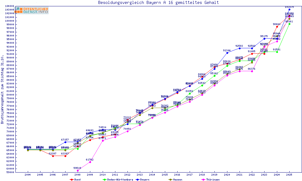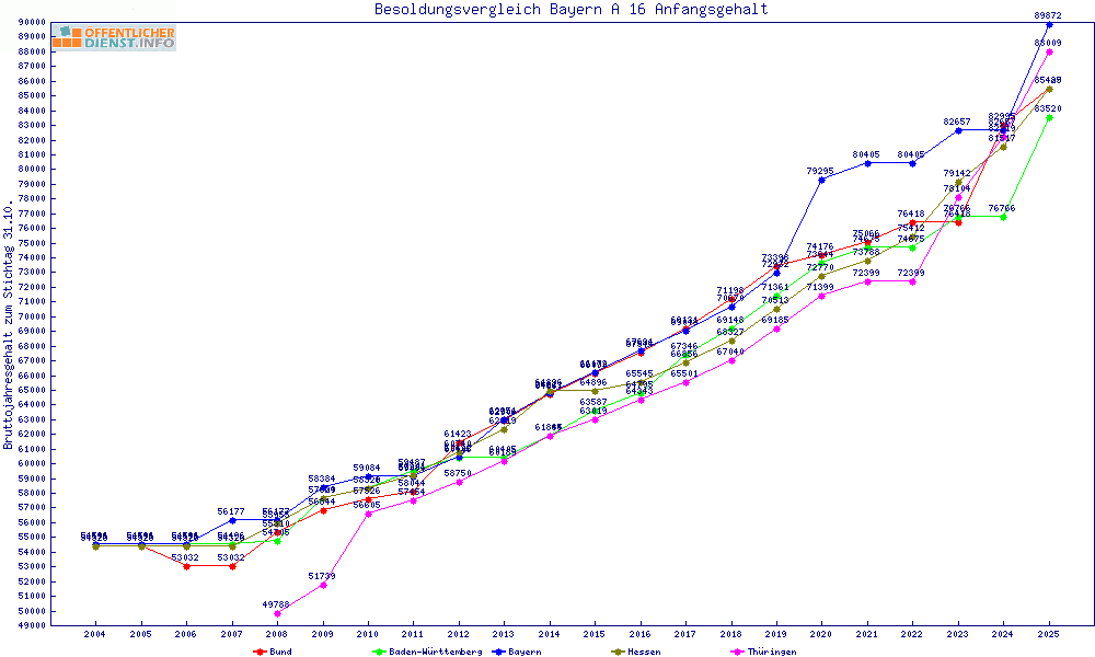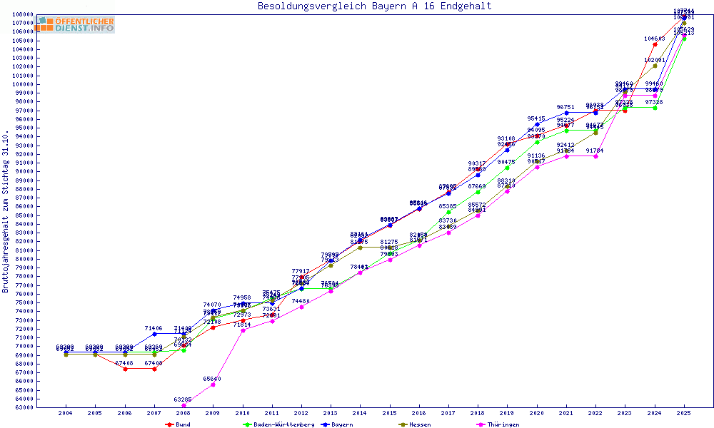 | Besoldungsvergleich A 16 im Jahr 2025 | Anfangsgehalt | ||||||