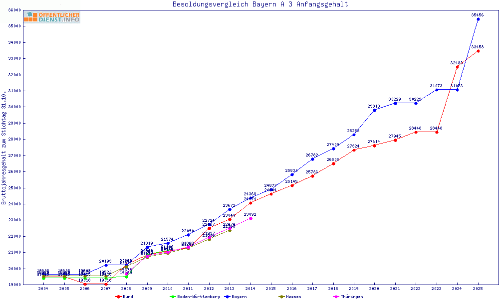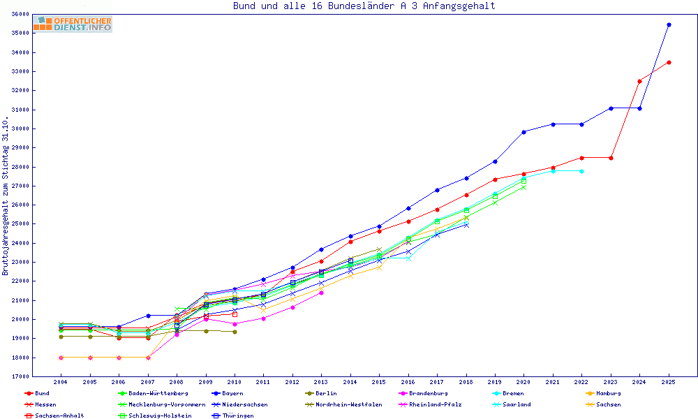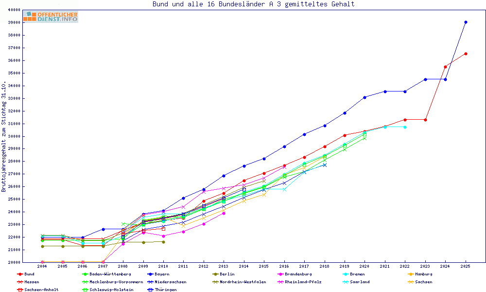 | Besoldungsvergleich A 3 im Jahr 2025 | gemitteltes Gehalt | ||||||