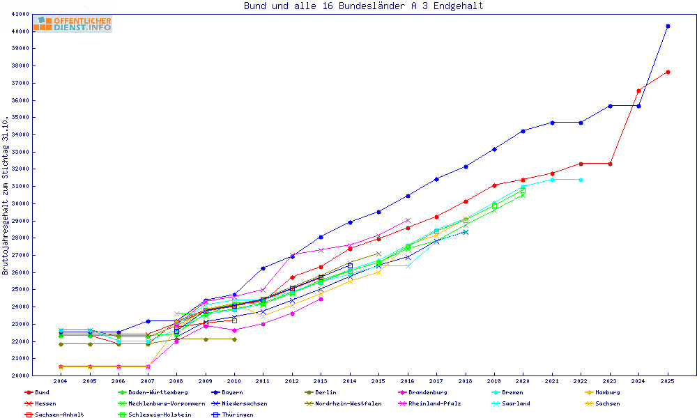 | Besoldungsvergleich A 3 im Jahr 2025 | Endgehalt | |||||||
