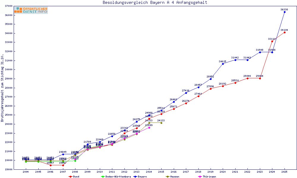 | Besoldungsvergleich A 4 im Jahr 2025 | Anfangsgehalt | ||||||