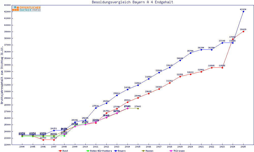 | Besoldungsvergleich A 4 im Jahr 2025 | Endgehalt | |||||||