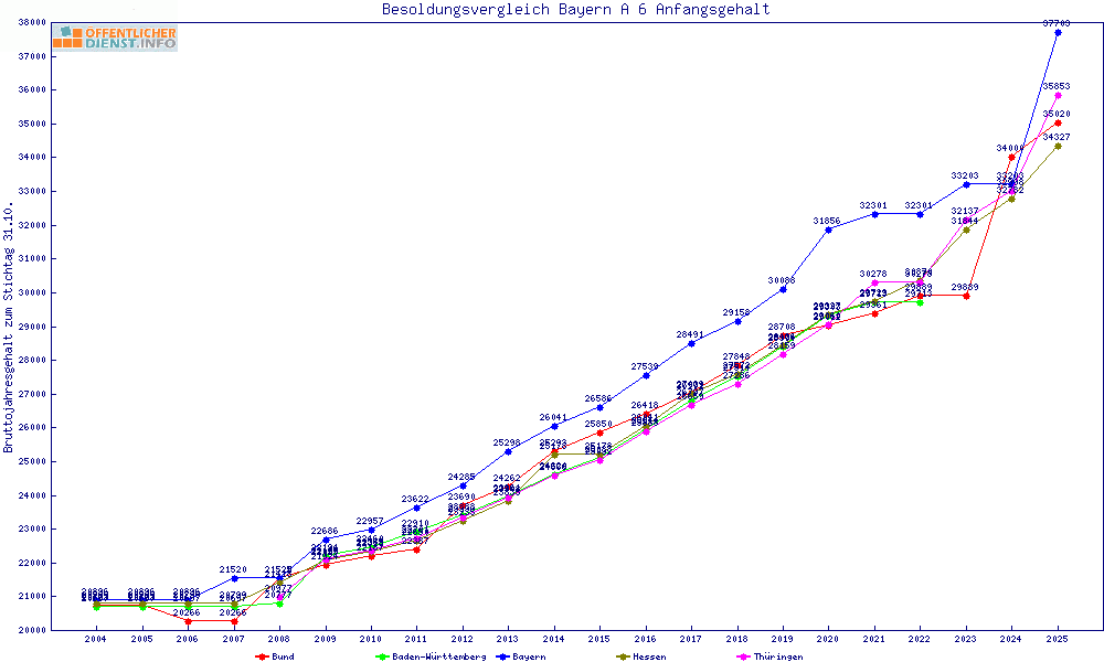 | Besoldungsvergleich A 6 im Jahr 2025 | Anfangsgehalt | ||||||